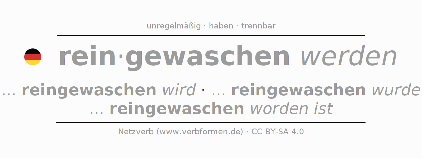... reingewaschen wird · ... reingewaschen wurde · ... reingewaschen worden ist