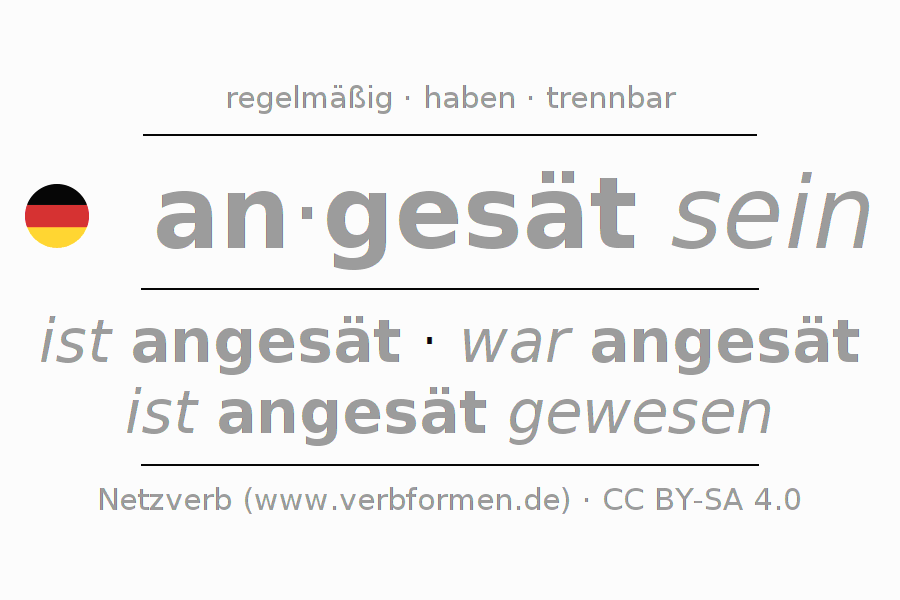 - Perfekt: ich bin angesät gewesen, du bist angesät gewesen, er ist angesät gewesen, wir sind angesät gewesen, ihr seid angesät gewesen, sie sind angesät gewesen