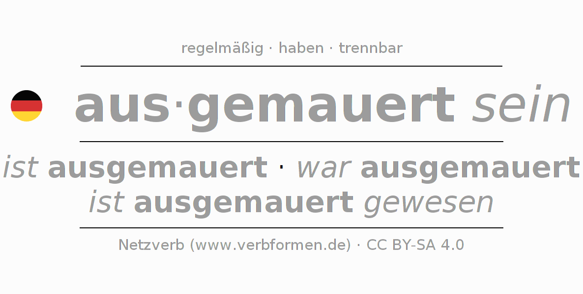 - Perfekt: ich bin ausgemauert gewesen, du bist ausgemauert gewesen, er ist ausgemauert gewesen, wir sind ausgemauert gewesen, ihr seid ausgemauert gewesen, sie sind ausgemauert gewesen