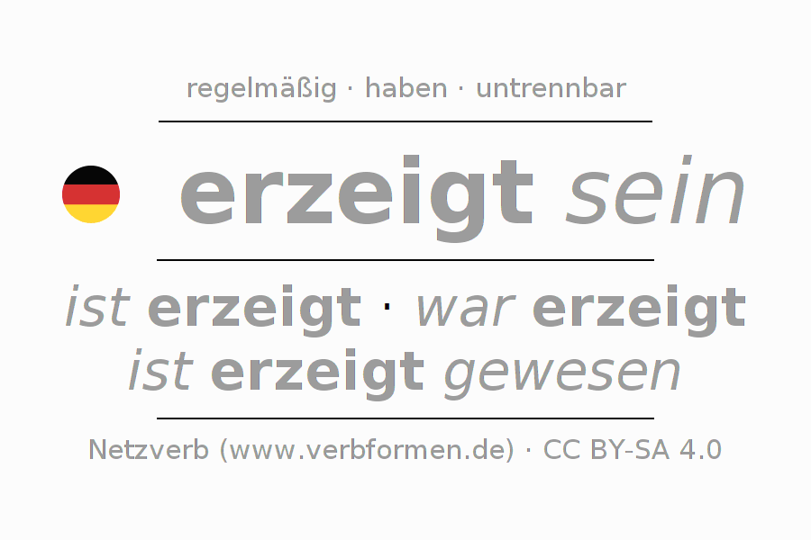 - Perfekt: ich bin erzeigt gewesen, du bist erzeigt gewesen, er ist erzeigt gewesen, wir sind erzeigt gewesen, ihr seid erzeigt gewesen, sie sind erzeigt gewesen