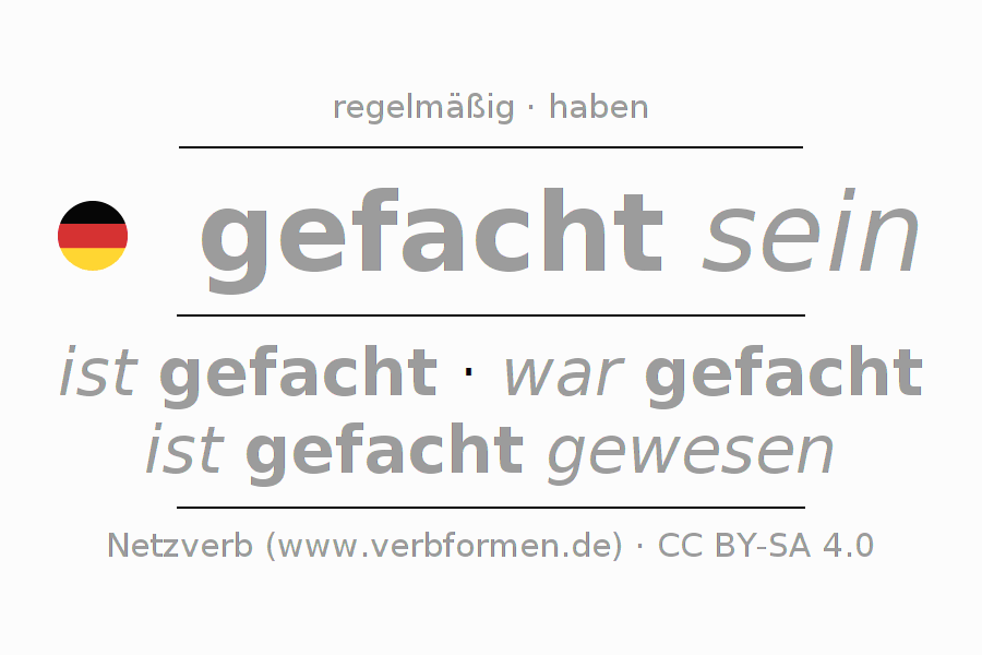 - Perfekt: ich bin gefacht gewesen, du bist gefacht gewesen, er ist gefacht gewesen, wir sind gefacht gewesen, ihr seid gefacht gewesen, sie sind gefacht gewesen