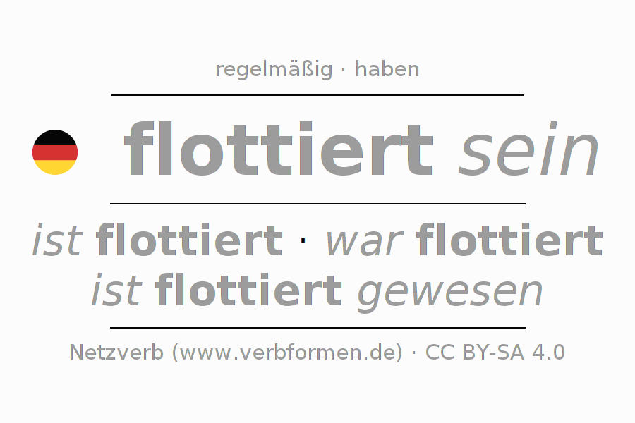 - Futur I: ich werde flottiert sein, du wirst flottiert sein, er wird flottiert sein, wir werden flottiert sein, ihr werdet flottiert sein, sie werden flottiert sein