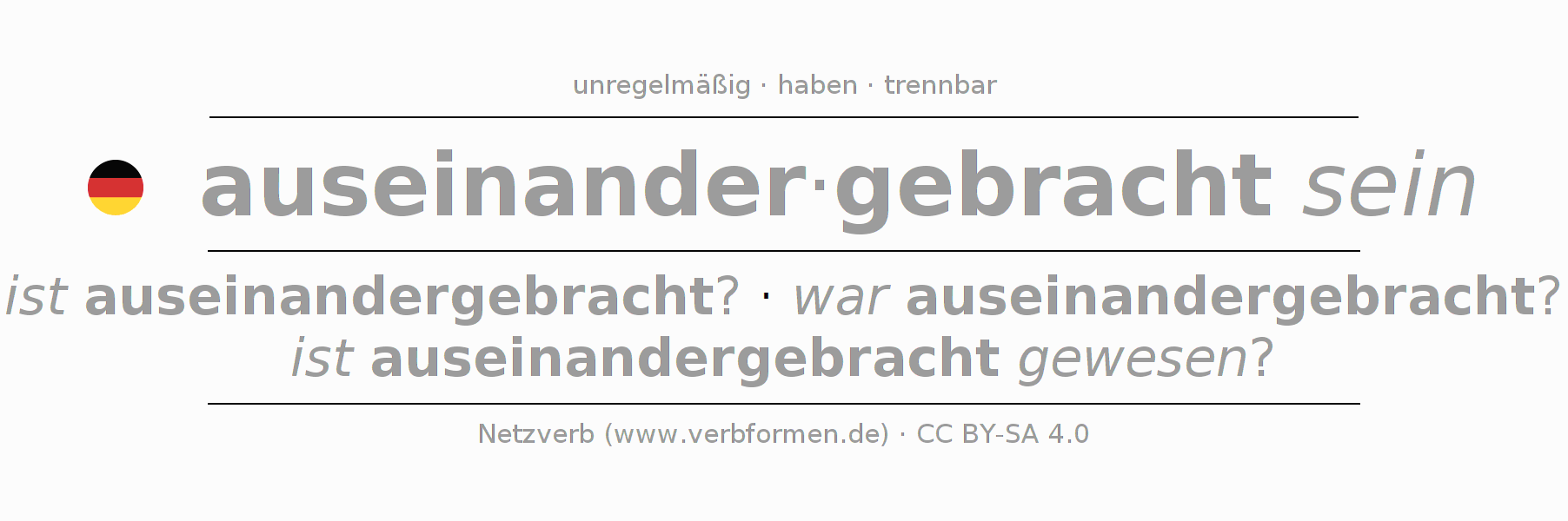 - Infinitiv I: auseinandergebracht sein, auseinandergebracht zu sein