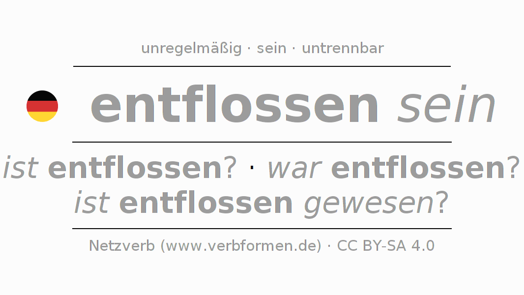 - Futur II: werde ich entflossen gewesen sein?, werdest du entflossen gewesen sein?, werde er entflossen gewesen sein?, werden wir entflossen gewesen sein?, werdet ihr entflossen gewesen sein?, werden sie entflossen gewesen sein?