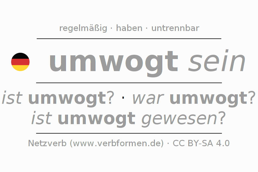 - Futur I: werde ich umwogt sein?, wirst du umwogt sein?, wird er umwogt sein?, werden wir umwogt sein?, werdet ihr umwogt sein?, werden sie umwogt sein?