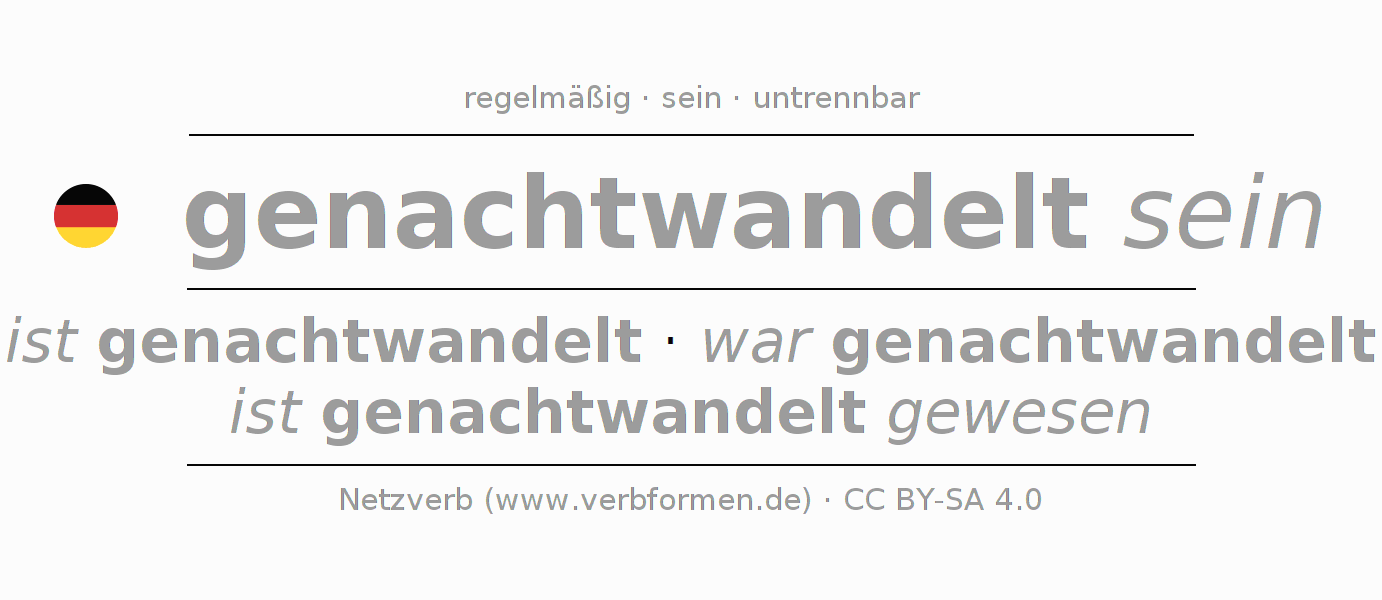 - Präsens: sei (du) genachtwandelt, seien wir genachtwandelt, seid (ihr) genachtwandelt, seien Sie genachtwandelt