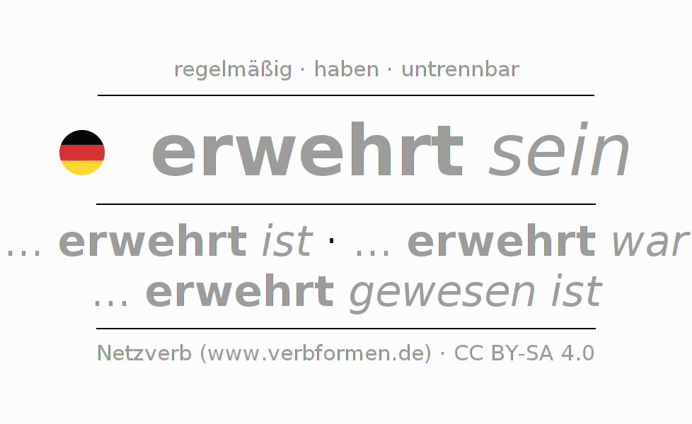 Das Konjugieren des Verbs erwehren erfolgt regelmäßig. Die Stammformen sind ... erwehrt ist, ... erwehrt war und ... erwehrt gewesen ist. Als Hilfsverb von erwehren wird "haben" verwendet. Die Vorsilbe er- von erwehren ist untrennbar. Die Beugung erfolgt im Zustandspassiv und die Darstellung als Nebensatz. Zum besseren Verständnis stehen unzählige Beispiele für das Verb erwehren zur Verfügung. Zum Üben und Festigen gibt es außerdem kostenlose Arbeitsblätter für erwehren. Man kann nicht nur erwehren konjugieren, sondern alle deutschen Verben. Das Verb gehört zum Wortschatz des Zertifikats Deutsch bzw. zur Stufe C2. Kommentare ☆