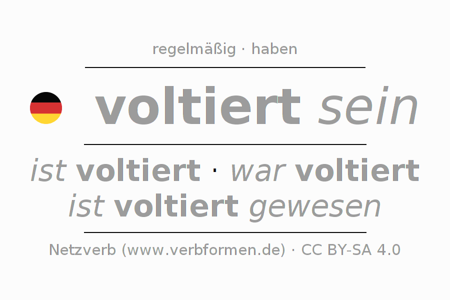 - Futur I: ich werde voltiert sein, du wirst voltiert sein, er wird voltiert sein, wir werden voltiert sein, ihr werdet voltiert sein, sie werden voltiert sein