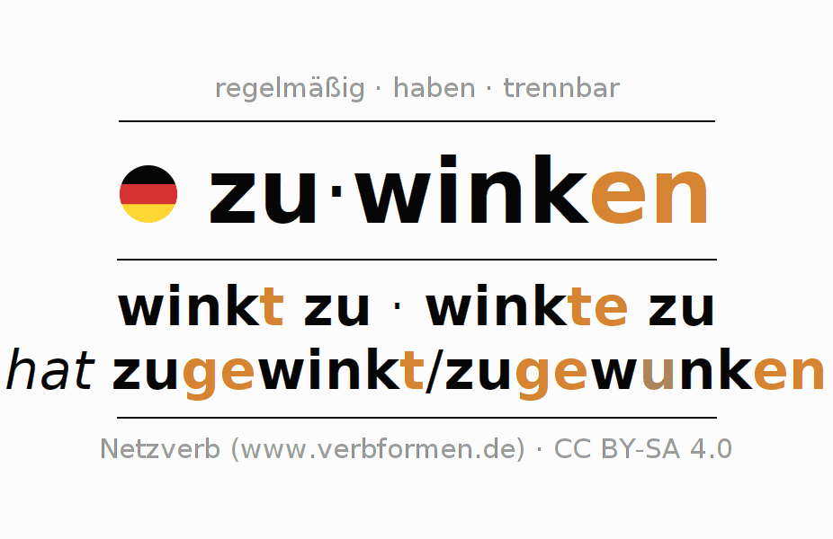 - Infinitiv II: zugewinkt/zugewunken haben, zugewinkt/zugewunken zu haben